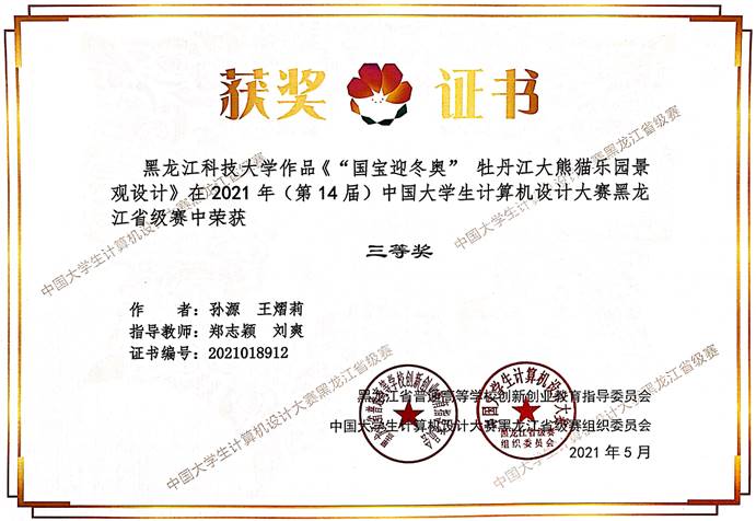 近日,2021年第十四届中国大学生计算机设计大赛黑龙江省赛落下帷幕。经过多日角逐,由MILE米乐官方网站郑志颖、刘爽老师指导的风景园林专业2018级学生孙源、王熠莉完成的作品《“国宝迎冬奥”牡丹江大熊猫乐园景观设计》,荣获本次计算机设计大赛数媒静态设计专业组三等奖。