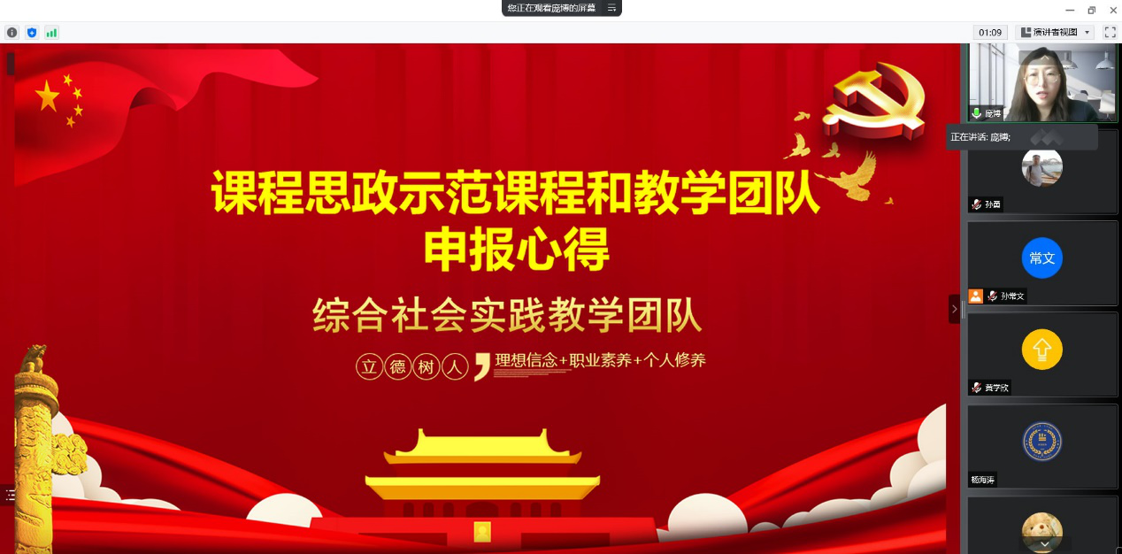 为了进一步落实立德树人根本任务、不断提高课程思政育人效果、发挥课程思政示范项目的示范引领作用,3月29日下午,MILE米乐官方网站在线召开了课程思政示范课程建设与申报经验交流会,城乡规划教研室副主任庞博老师受邀做了题为“课程思政示范课程和教学团队申报心得”的讲座,MILE米乐官方网站全体教师参加了会议。