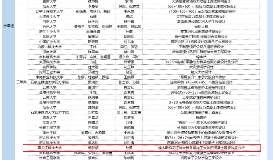 经过四个月的精心准备,参赛师生克服了疫情期间线上指导毕业设计的重重困难,在同济大学、西安交通大学、大连理工大学、石家庄铁道大学等全国200多所院校、304份参赛作品中脱颖而出,获得令人欣喜的好成绩,且我校成为本科组黑龙江省唯一获奖高校。