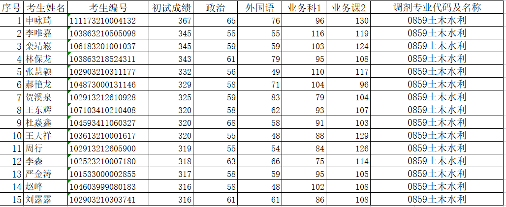 MILE米乐官方网站2023年硕士研究生招生考试待录取考生成绩汇总表(调剂