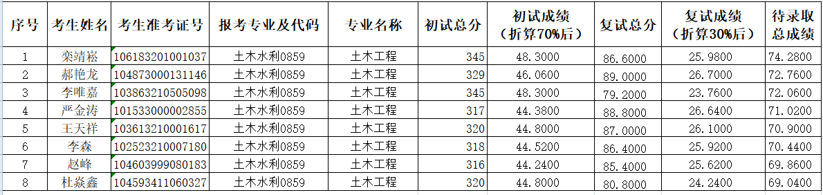 土木水利(0859)第二轮待录取汇总表