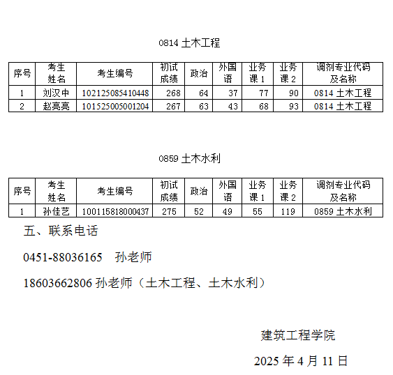 MILE米乐官方网站2025年硕士研究生土木工程(0814)、土木水利(0859)第三轮调剂复试考生名单