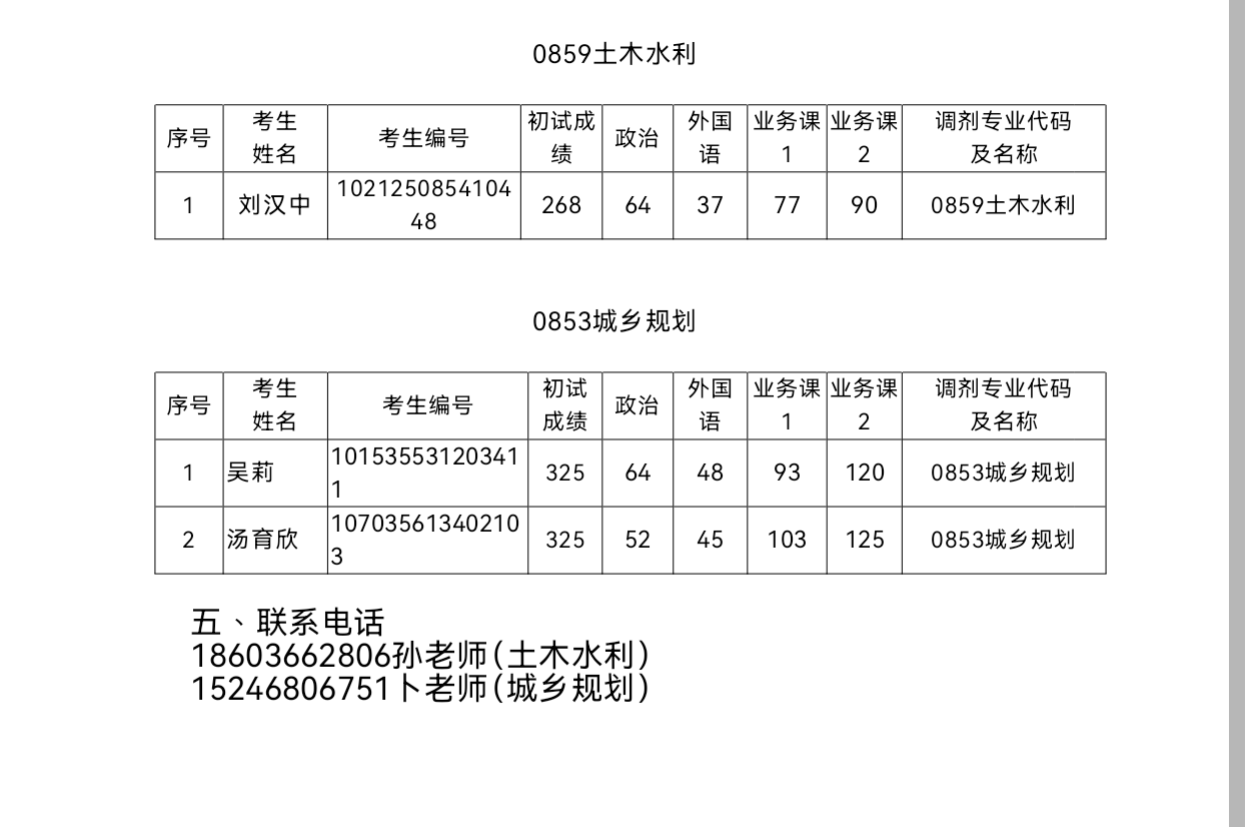MILE米乐官方网站2025年硕士研究生招生考试(城乡规划0853)第三次调剂复试成绩