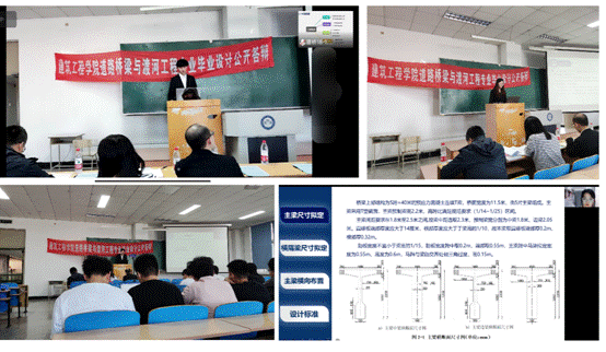 根据学校教学计划安排,道路桥梁与渡河工程专业2022届本科生毕业设计答辩于2022年6月8日-11日以线上线下混合的方式顺利举行。6月8日上午8:30-11:00在教学主楼EN0301进行了公开答辩,6月8日13:30-6月10日16:00在教学主楼WS0917、WS0921进行了小组答辩。郭洪林书记、姜封国副院长、董连成副院长分别以线上线下的形式参加了公开答辩并给予指导,经全体师生共同努力,答辩工作圆满结束。