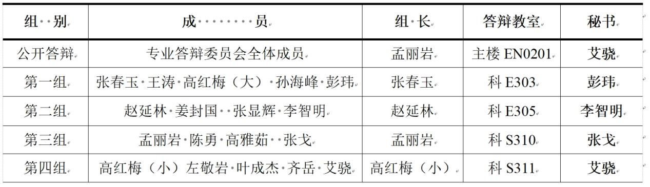 本次土木工程专业小组答辩分为四组,中俄土木小组答辩分为四组,每组还邀请了一名俄方老师参加,答辩分组见表1、表2。