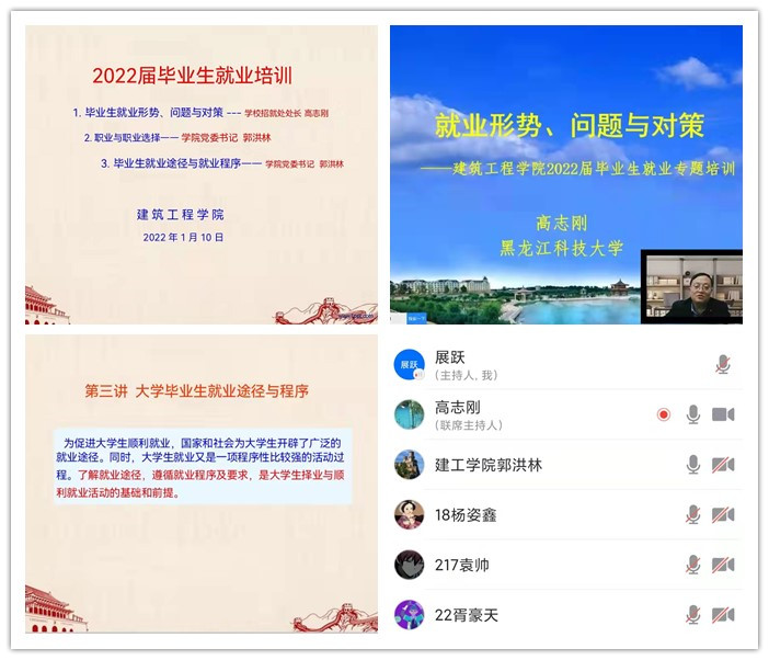为应对严峻的就业形势,尤其是新冠疫情对就业带来的影响,促进2022届毕业生顺利就业,MILE米乐官方网站于1月10日至1月12日组织召开了2022届毕业生寒假就业培训会。会议采取“腾讯会议”形式,在每晚19:00进行,2022届毕业生、毕业班班主任、学生辅导员参加了此次培训。