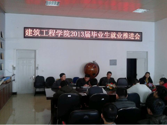 按照学校2013年党政工作要点的部署和安排,为了更好地巩固“就业50强”成果, 切实推进我院2013届毕业生就业工作,确保就业质量和就业率目标的实现,建工学院于2013年3月19日在建工学院会议室召开了2013届毕业生就业推进会。全体教师参加了会议,会议由党委书记尹晓黎同志主持,党委副书记邬承斌、副院长姜云、副院长薛志成出席了会议。